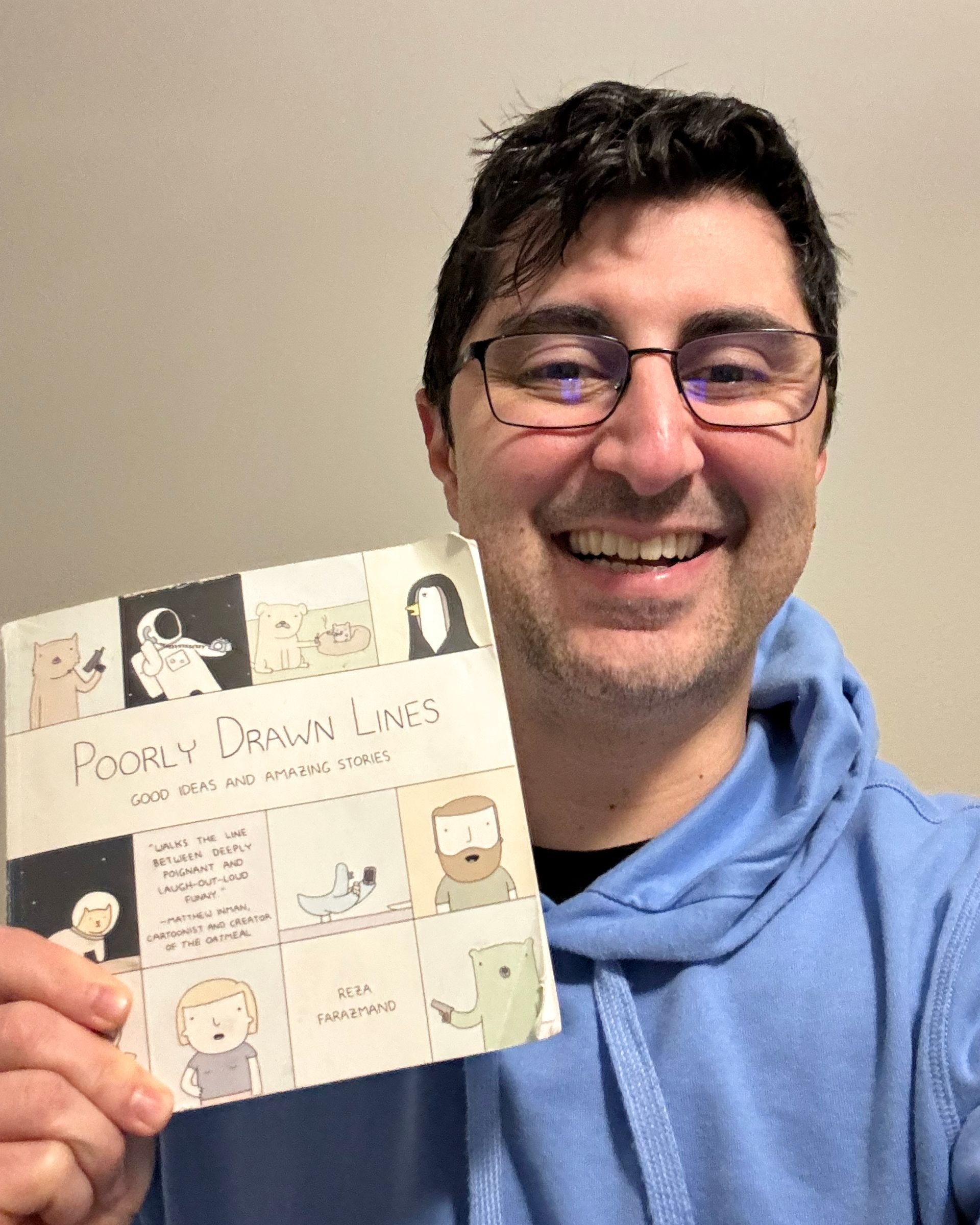 Reza Farazmand's Poorly Drawn Lines: Good Ideas and Amazing Stories collects the best of his popular webcomic of the same name. The comics are full of irreverent, satirical absurdity, but I was surprised to find myself laughing out loud at the short essays too! Just as dark and whimsical as the strips. Fair warning: if profanity isn't your thing, this one's probably not for you. But if you're a fan of the absurd, it's a treat.